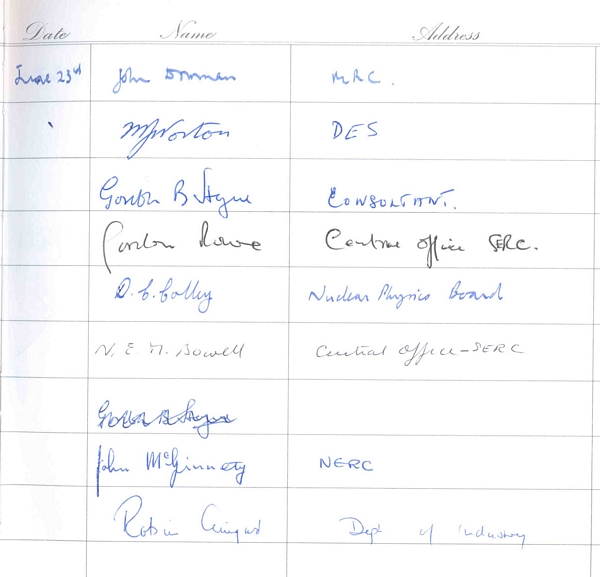 There were a set of visits by various SERC Committees early in 1982. Brian Rosen of Three Rivers came as did Kenneth Baker and Keith Joseph from the government. Philip Hughes, Managing Director of Logica, and Sir Peter Bonfield, later to become Managing Director of ICL and then BT.