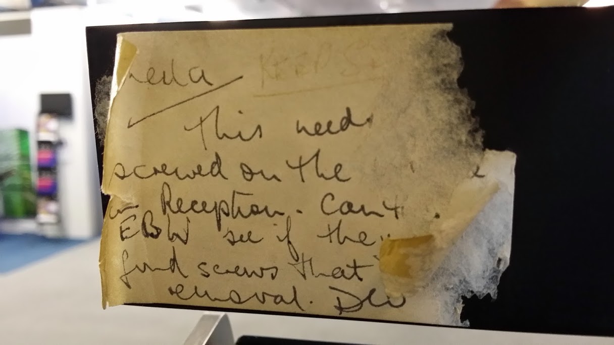 Retained • Found in a skip of rubbish during clear-out of PPD offices, February 2015 |
