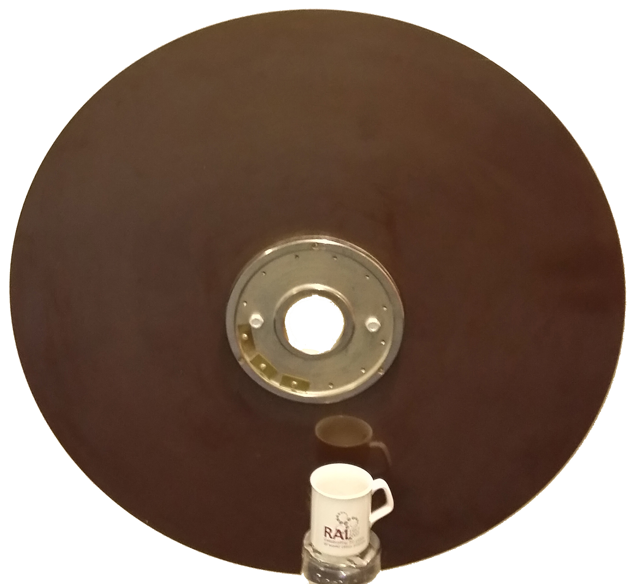 • This is slightly less than 1m in diameter and held about 6Mbytes of data • The coffee mug is for scale |