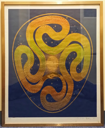 ATLAS.01.0011 'Serpents Egg' print (August 1974) Retained Silk-screen onto gold paper by Colin Emmett and Alan Kitching |