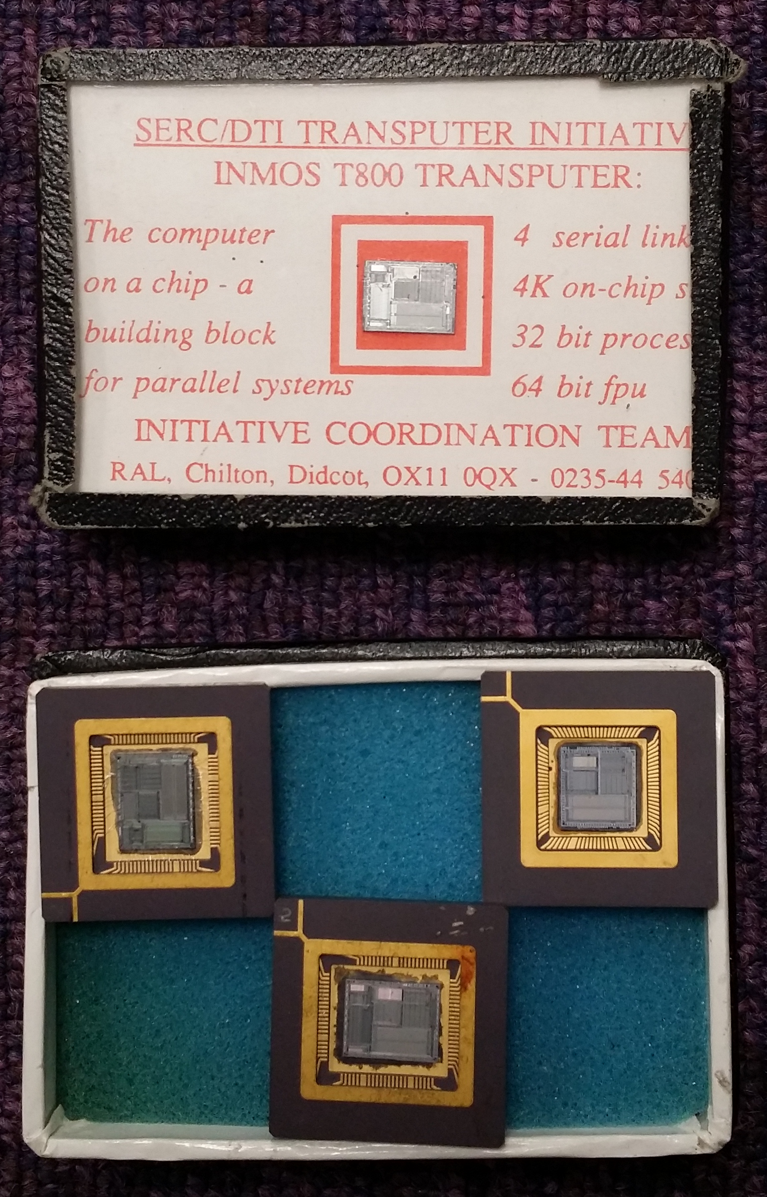 • Donated by Terry Mawby, February 2018 • A selection of INMOS T800 transputer chips given as samples to the Transputer Initiative team |
