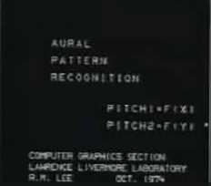 ATLAS.04.1002 Aural pattern recognition (1974) Computer Graphics Section, Lawrence Livermore Laboratory • /gallery/videos/mp4s/aural.mp4 • /gallery/videos/oggs/aural.ogg • /gallery/videos/webms/aural.webmsd.webm |