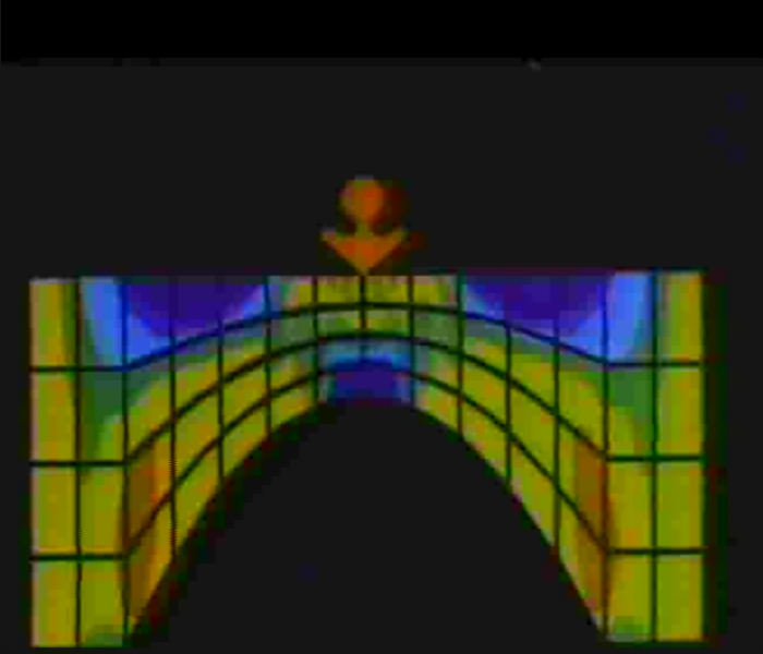 ATLAS.04.1012 Finite elements (1975) Atlas Computer Laboratory in association with the Royal College of Art; Peter Haddingham, Swift Film Productions • Animation and music by the ANTICS computer system • On an ICL 1906A computer and SD4020 microfilm recorder • Designed by Alan Kitching, produced by Jean Crow • With the Dept of Mechanical Engineering, Nottingham; Dept of Civil Engineering, Southampton • /gallery/videos/mp4s/Finite_Elements_F1027_PAL.mp4 • /gallery/videos/oggs/Finite_Elements_F1027_PAL.ogg • /gallery/videos/webms/Finite_Elements_F1027_PAL.webmsd.webm |