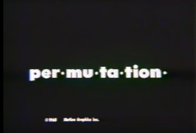 ATLAS.04.1043 Permutations (1966) Produced under a research grant from IBM • Made by John Whitney • https://www.youtube.com/watch?v=BzB31mD4NmA |