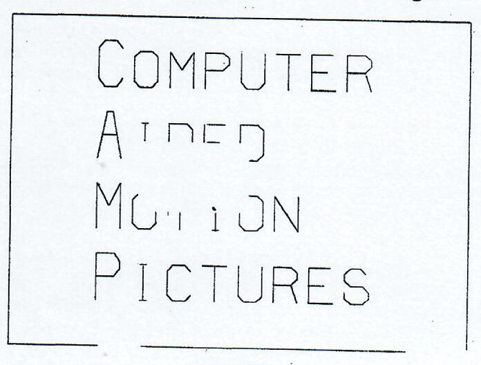 In addition, an alphanumeric set of 49 characters is provided. They have been created using straight line segments and may be manipulated in size, position, and orientation so as to give a large degree of flexibility in creating text. When lines of text are desired, a single command can be used that automatically spaces up to 20 characters. If more than 20 characters are required, the command can be used consecutively to concatenate the strings of text. A sample title used in a movie explaining the movie language is shown in Figure 4.