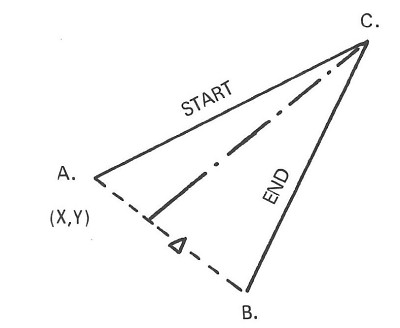 If, say, the end of a line is to swing between two points A and B, (Fig. 4.2) then the X co-ordinate of the end of the line during the scene is given by:X = XA + (XB - XA) * COUNT / FRAMES