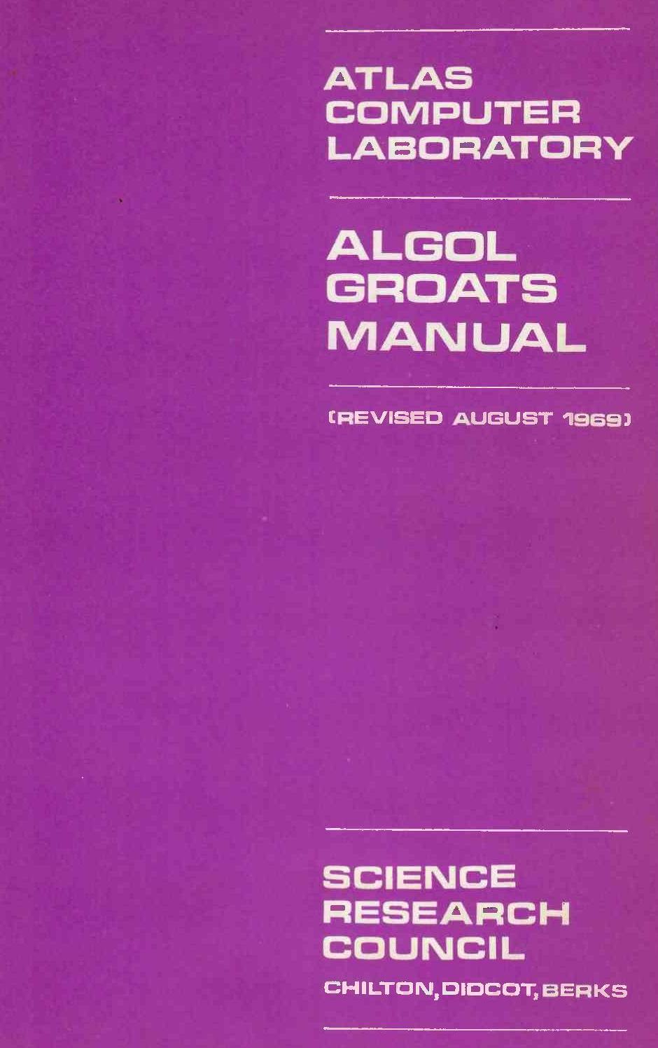 The Stromberg Carlson SC 4020 plotter provides the Atlas Laboratory with a very powerful graphical utility. To help the Algol user, a set of basic procedures, called GROATS, has been written to interface the user and the SC 4020. It was originally intended to use the same procedures defined for the Benson-Lehner plotter but this put unnecessary restrictions on the system. The new package has little in common with the old Benson-Lehner package and will mean that existing users will have to rewrite the graphical parts of their programs. The more powerful facilities available in the GROATS package should make this attractive.