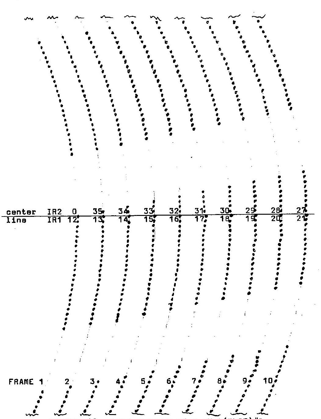 Both the time increment between each frame and the distance for each half-cycle can be calculated by adding the proper value to η before transforming to the ρ,χ coordinate system used by the plotter.
