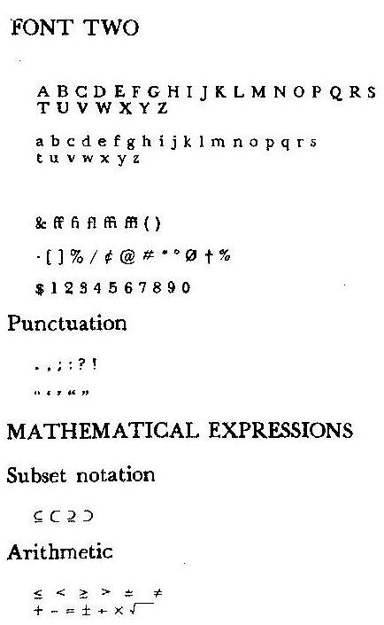 A listing of the cards which describe the letter Q is given in Table 1. The card decks for the complete fonts are too long to include here. Samples showing all the characters available in the three fonts are given in Figures 2 through 5.