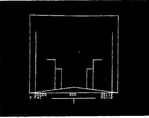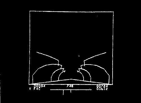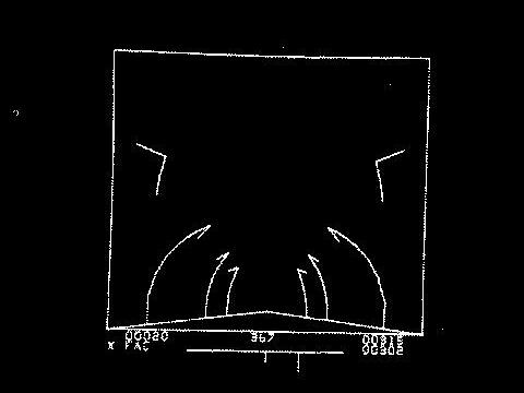 Figure 1 shows a display tube face containing a view of a country road as might be seen from the front windshield of a rocket car. Lining the road are telephone poles with crosspieces making the poles L-shaped. Because of computer memory limitations, only three poles are displayed on each side of the road. The operator controls the forward or backward acceleration of the rocket (the proper acceleration) down the road by giving light pen commands. Rocket velocity is limited only by the laws of relativity and can approach the velocity of light. However, the visual presentation is scaled, so that relativistic effects are easily visible. This scaling can be interpreted in either one of two alternative ways: (1) the road is normal width, and the speed of light is sixty miles per hour, or (2) the speed of light has its normal value, while the telephone pole height and the road width are comparable to the dimensions of the planet Jupiter. Either interpretation applies to the one display.