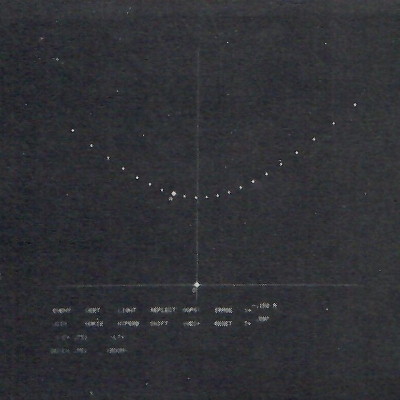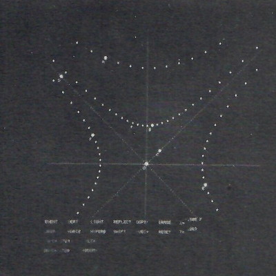 Event-points are placed on the display by using the light pen to move the tracking cross to the desired place on the screen and then touching the EVENT button. Up to 16 points can be displayed on the screen simultaneously (Figure 8). Each new point is automatically labeled with a letter in alphabetical order. Coordinates of any single event are displayed when the cooresponding display point is touched by the light pen. When a transformation is made from one frame to another, the entire field of points is simultaneously transformed, each to its new coordinate position (Figure 9).
