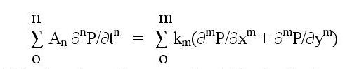 d2P/dt2 =k(d2P/dx2 + d2P/dy2), the acceleration of growth is proportional to the population curvature, and so on.