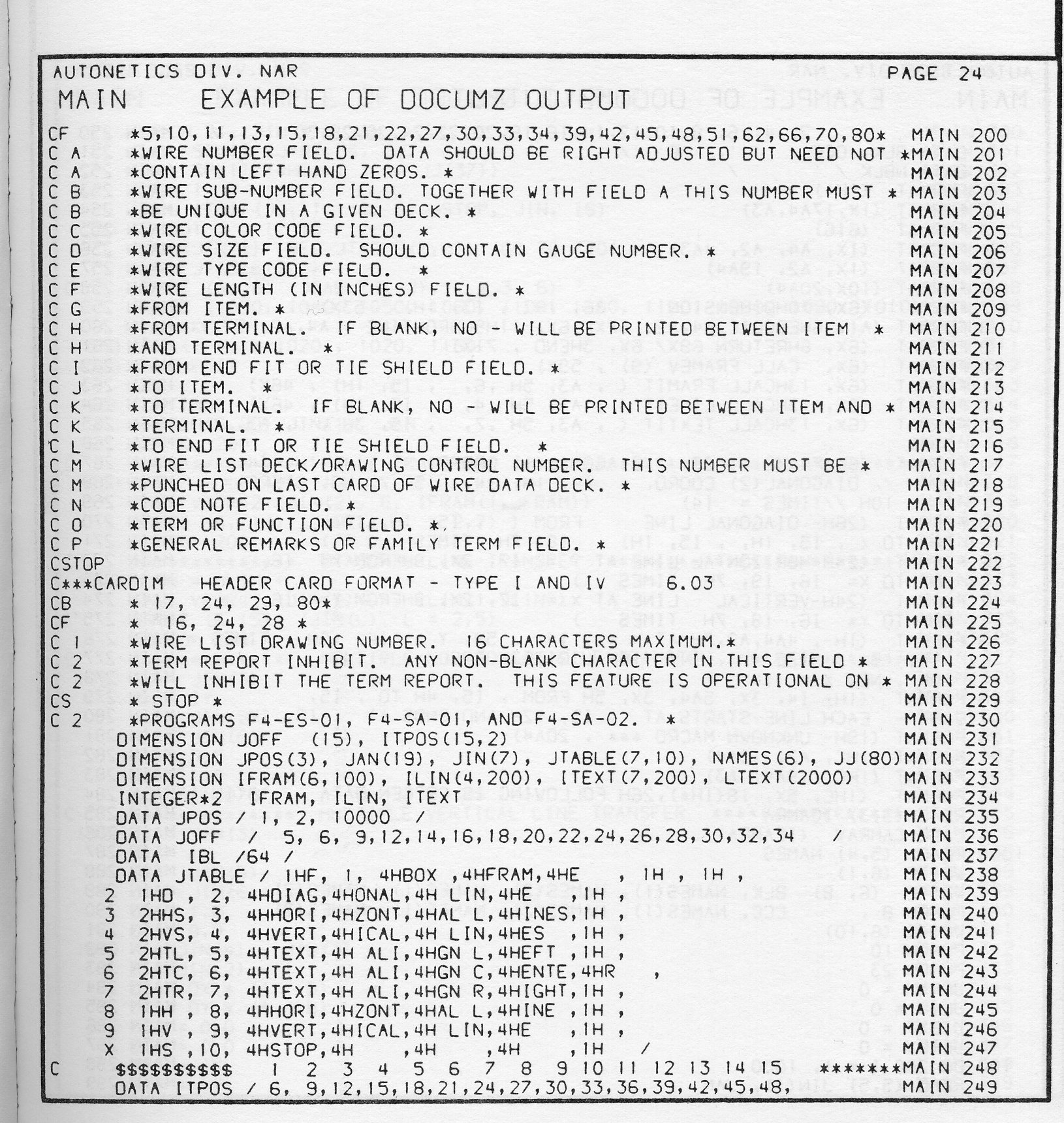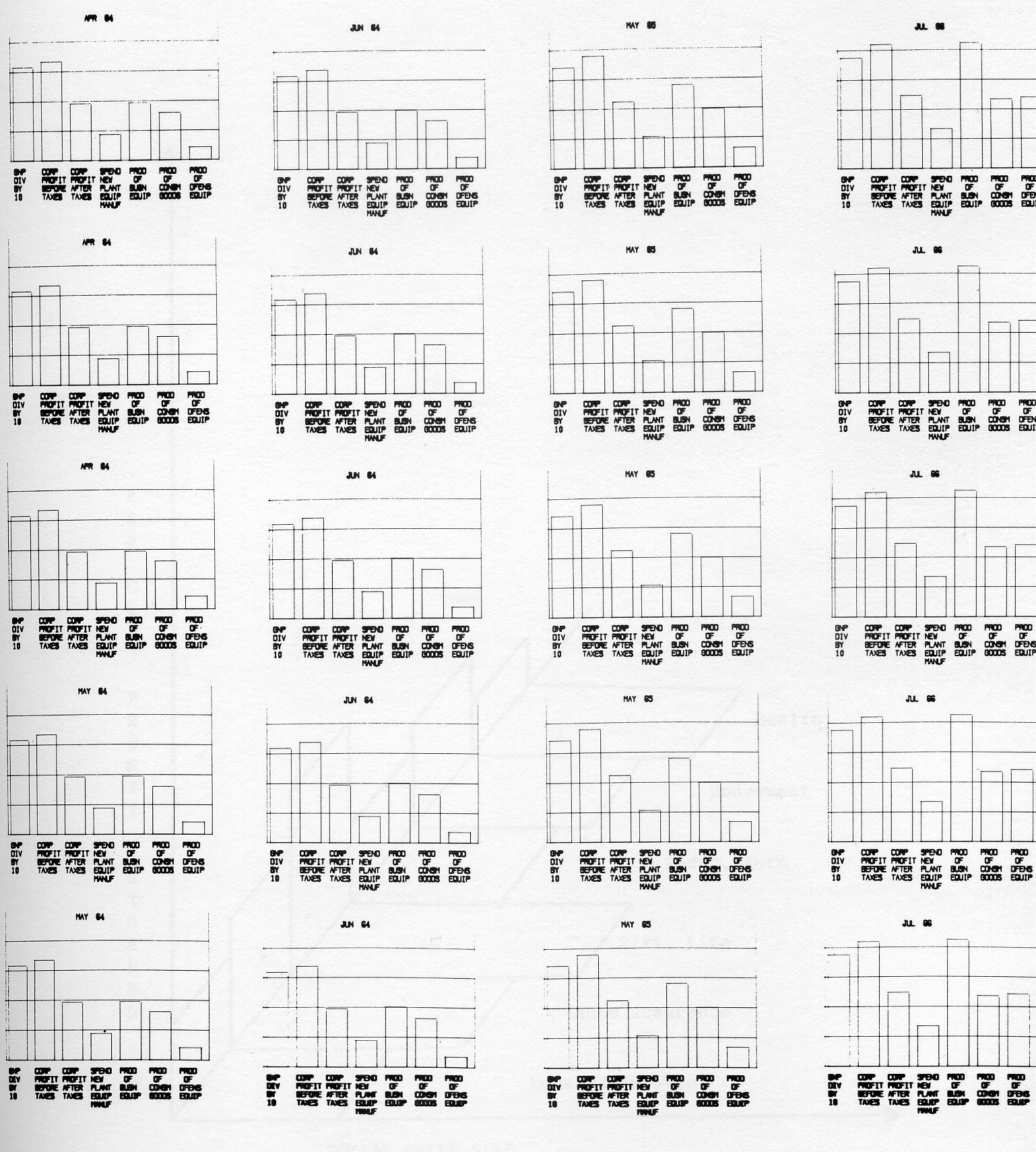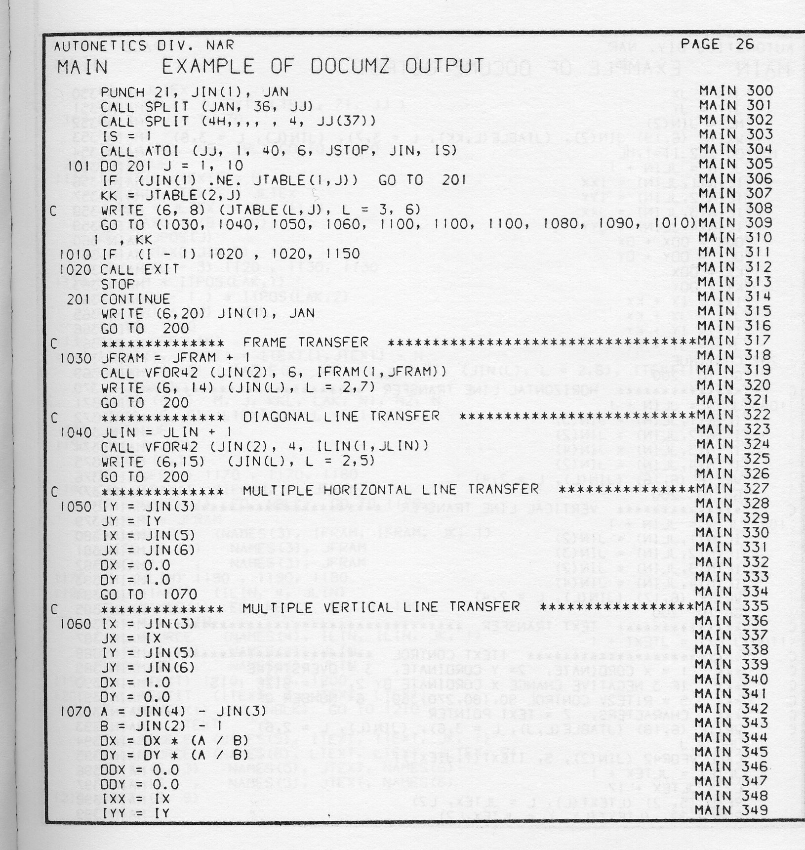 The prototype version of EXPLOR was implemented, because of historical reasons, in BE-FAP [6] on an IBM 360/50 emulating an IBM 7094 (with hardware-implemented convert instructions); it occupies 420008 locations, which includes the internal picture storage. The output device is a Stromberg DatagraphiX 4060, using a 4020 simulator modified in the following ways: right and left margins were extended giving an effective raster of 1024 × 1366; the period is output as the largest plotting dot, and character spacing in typewriter mode is changed to four 4020 units.