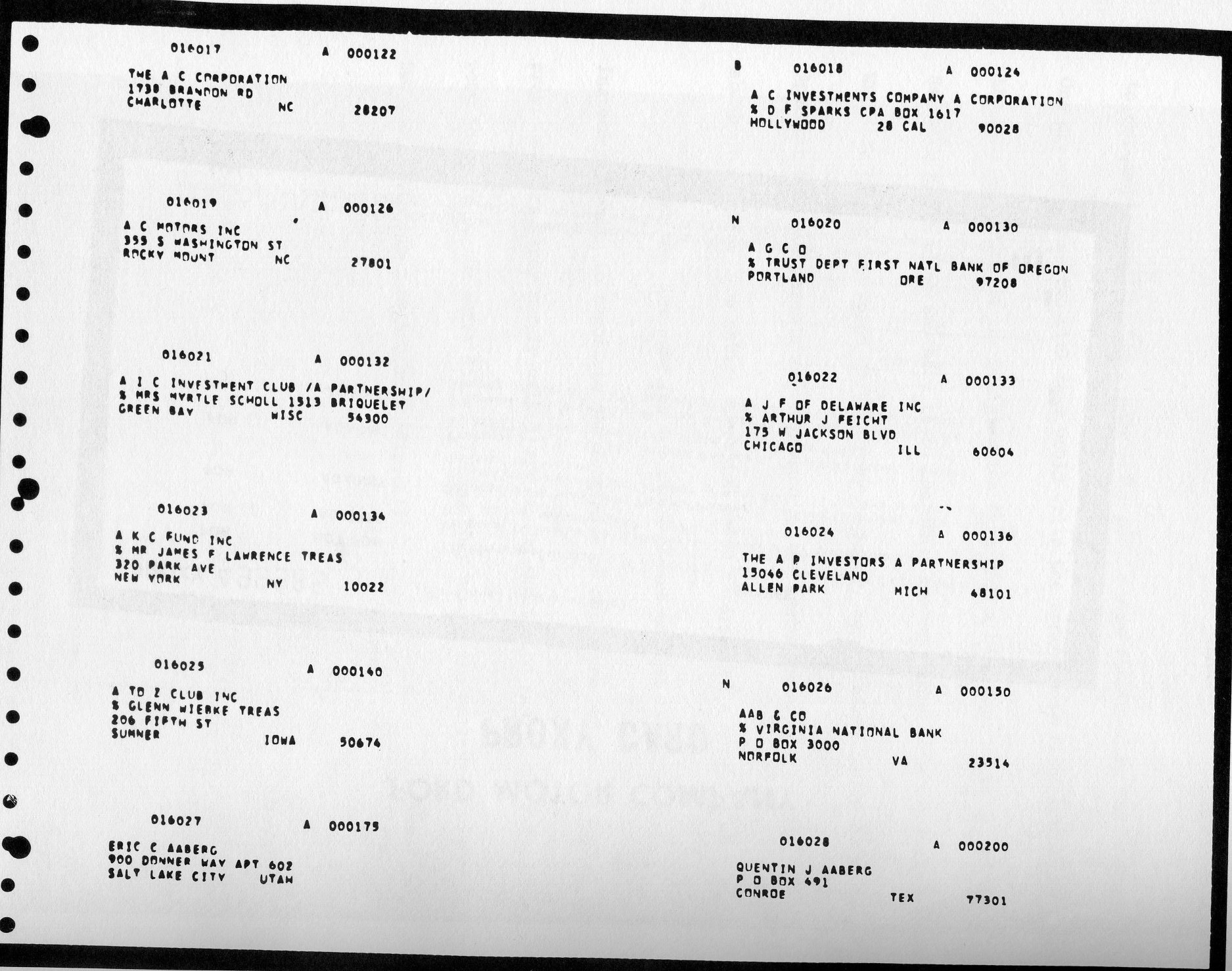 Mr George A. Baum McDonald Douglas Bldg. 35-25 3855 Lakewood Blvd. Long Beach, California 90801 (213) 593-2096 Mr John L. Ferber Dept. of Health, Education & Welfare 5906 Bryn Mawr Road College Park, Maryland 20740 (202) 963-5695 Mr Don Kennedy NASA GODDARD Information Processing Code 656 Greenbelt, Maryland 20771 (301) 982-6346 Mr Jim Splear General Motors Corp. - Research Labs 12 Mile and Mound Road Warren, Michigan 48092 (313) 575-3004