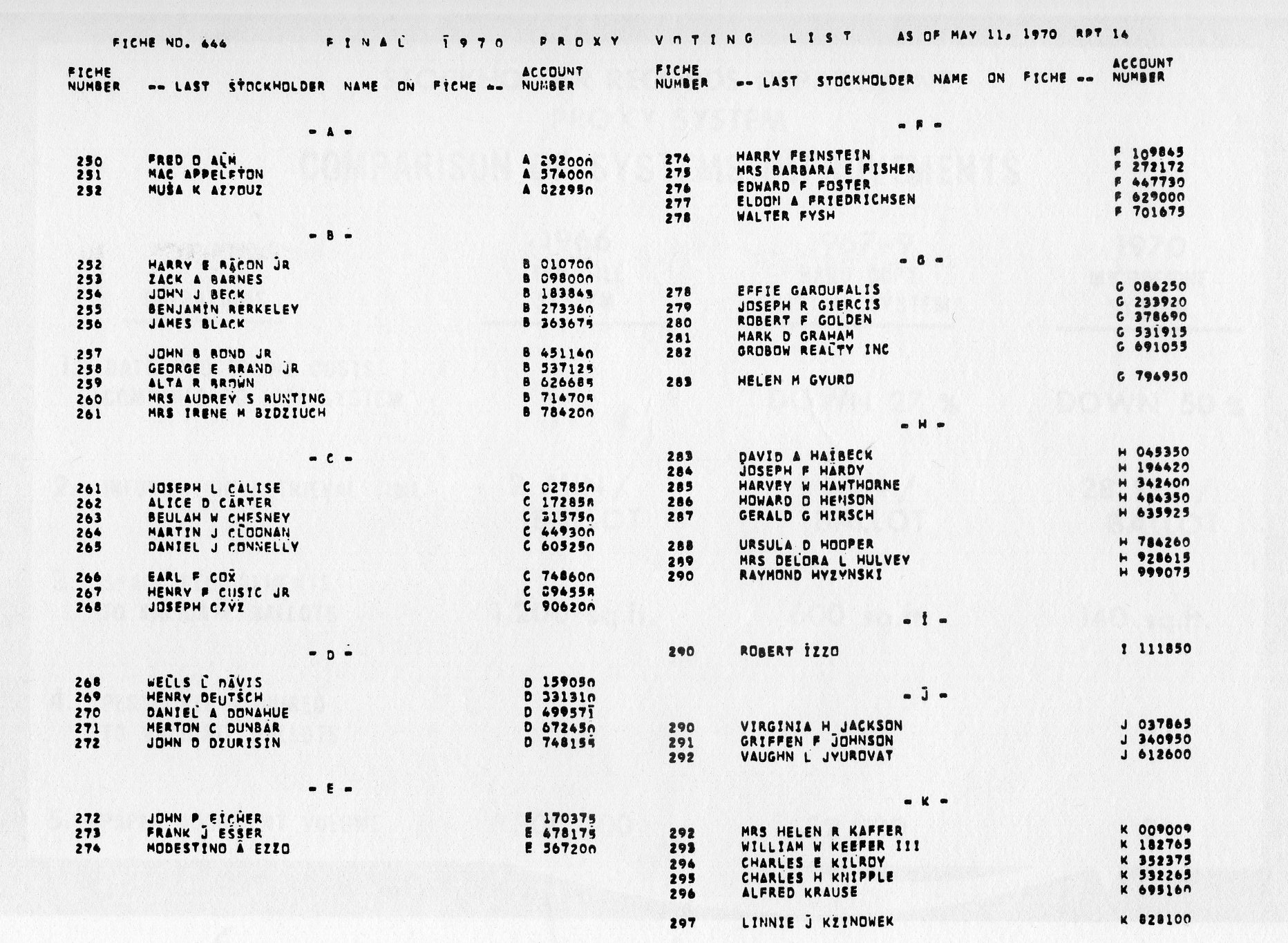 With the above goals established, here is what was accomplished during calendar year 1970.