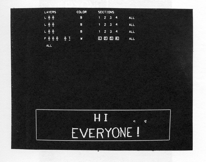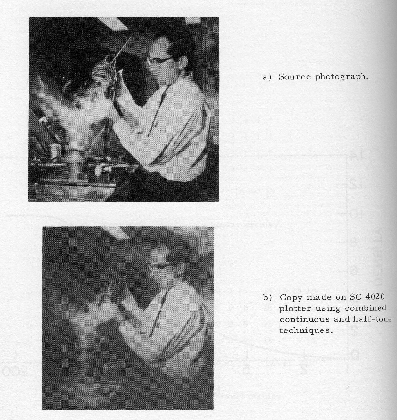In conclusion, then, we have demonstrated a method for increasing the number of gray levels in a display, at the expense of spatial resolution. When applied to the Stromberg-Carlson 4020 plotter, equipped with the Specified Intensity Plot feature, this method provides up to 240 gray levels. This is more than sufficient to eliminate the effects of video quantizing noise, and given the impression of a continuous gray scale in the picture.