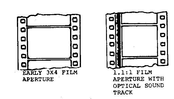 (Figure 5) The situation was this: the 3 × 4 aspect ratio had been established early in the movie game because people liked it that way. When sound came in it was clear that the track had to be put somewhere so it was printed inside the sprocket holes in what had been picture area and the picture area was chopped off to make room, leaving a square image. It was efficient and practical and people hated it.