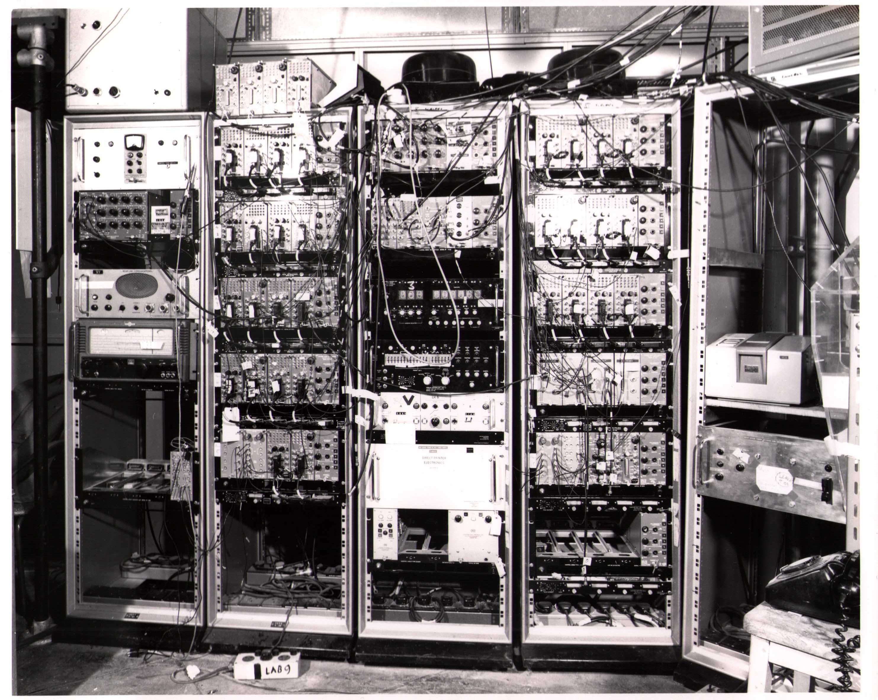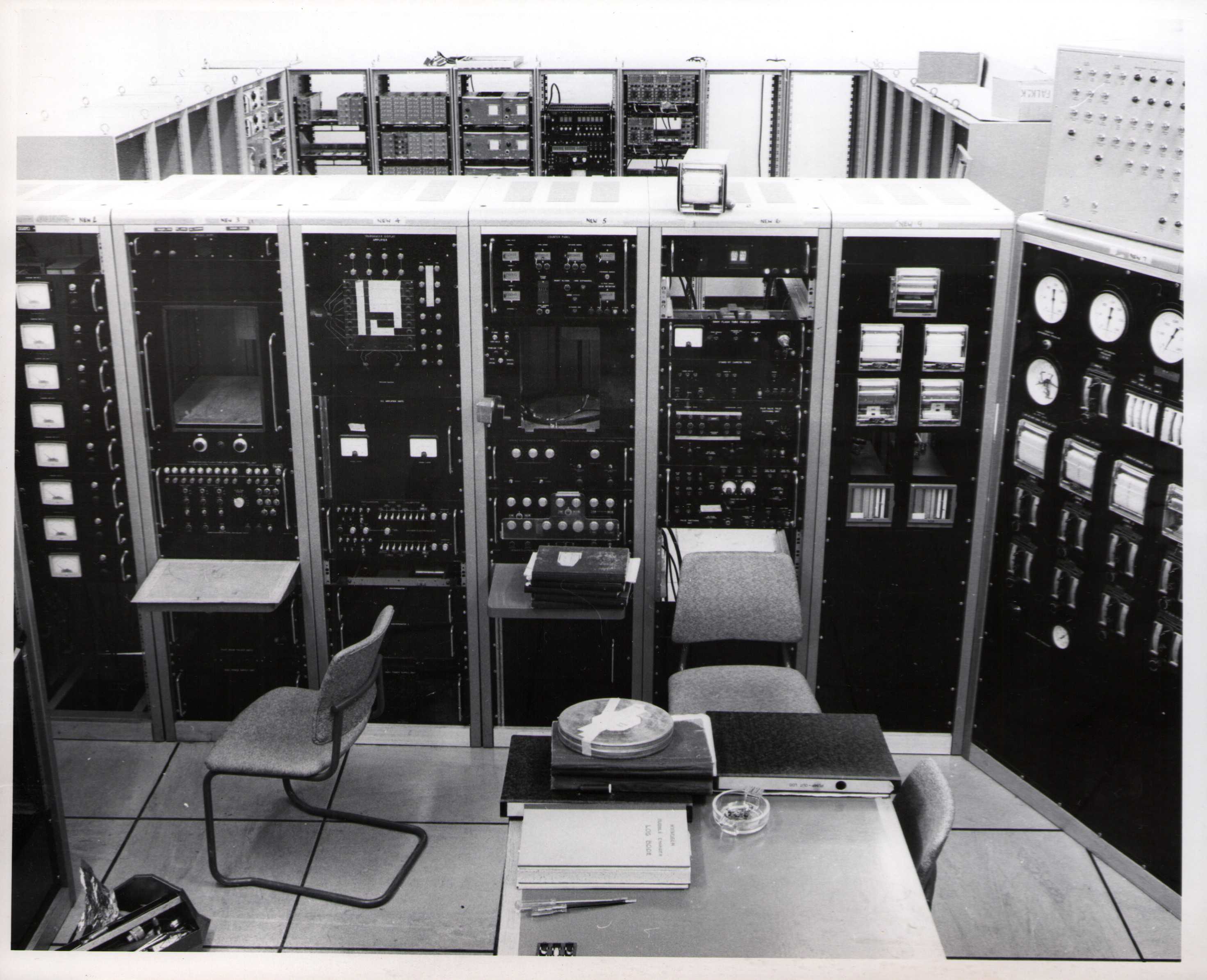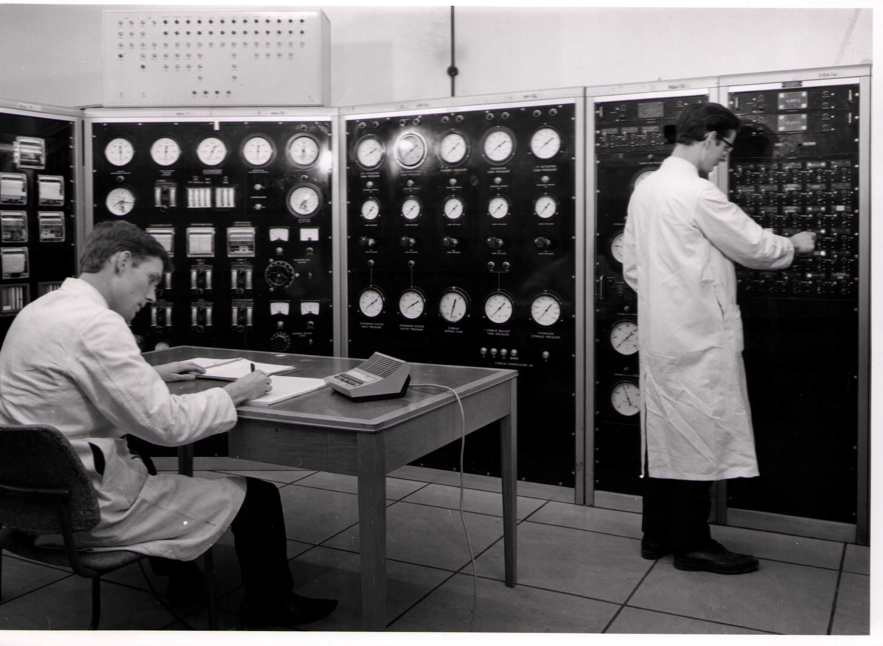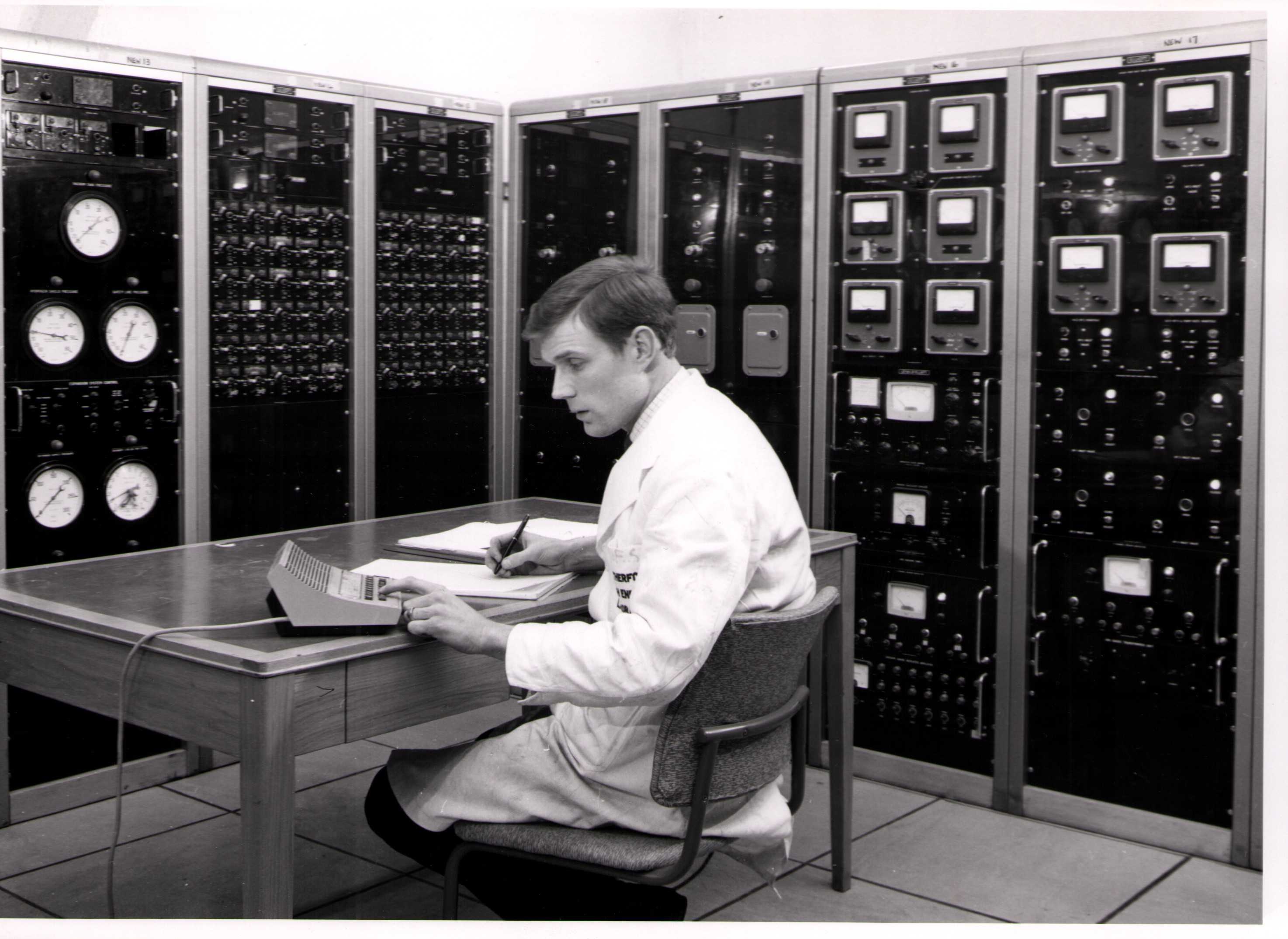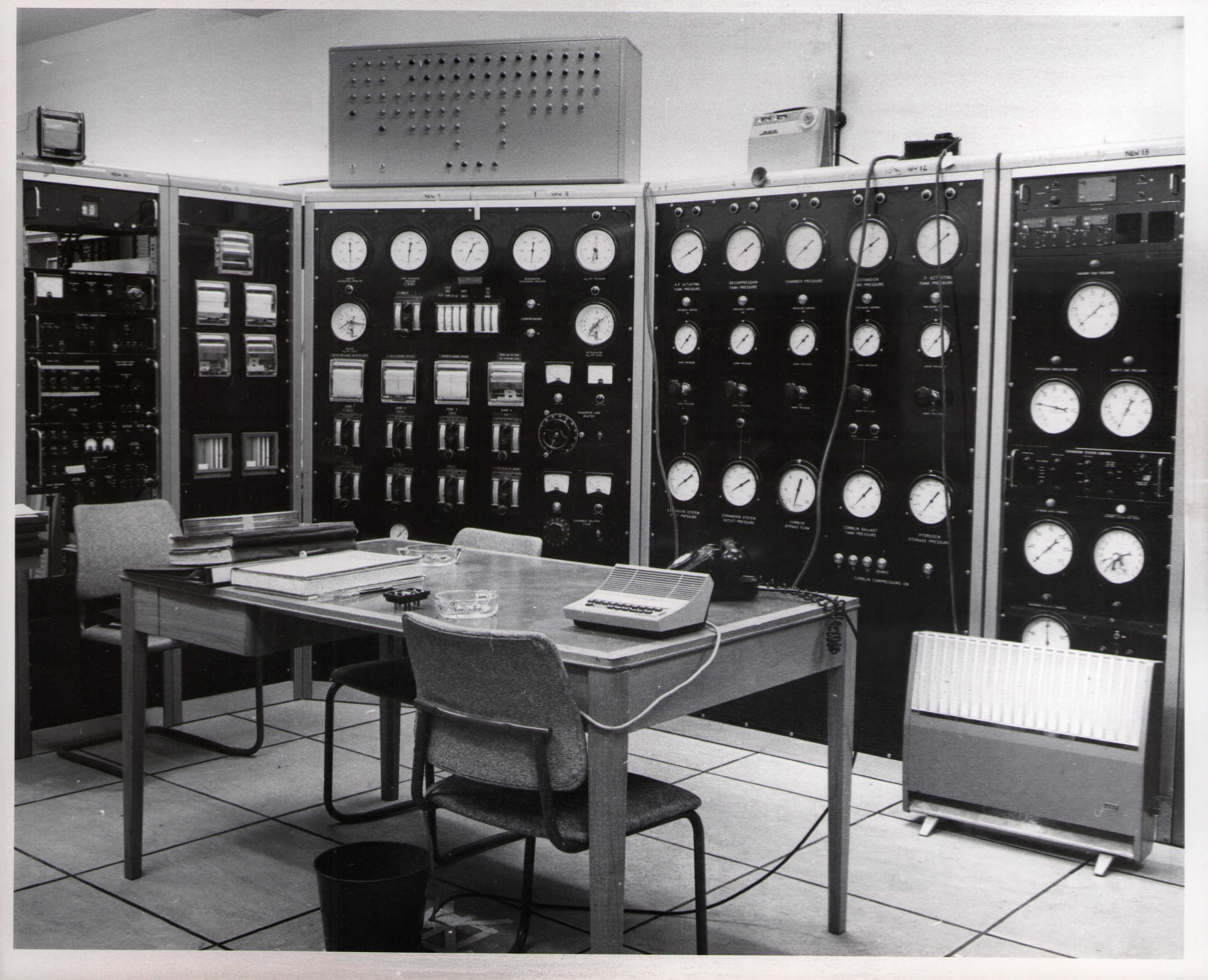 The explanatory notices on the equipment on these photos make it seem likely that they were taken in advance of an open day or VIP visit. The envelope in which they were found says "Nimrod Injector EHT Area; photo taken 25 March 1969."